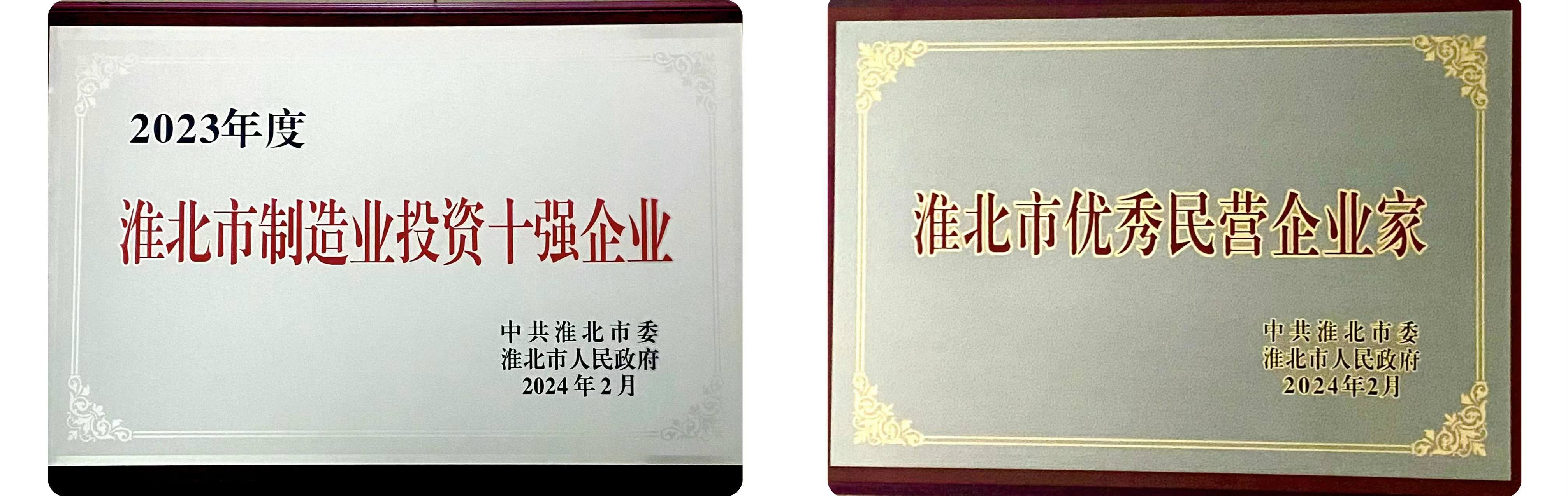 開春即有喜訊來,中旗集團董事長吳耀軍在2月19日淮北市委市政府召開的創建一流營商環境暨推進招商引資、工業經濟和民營經濟高質量發展大會上,榮獲“淮北市優秀民營企業家”稱號,集團下屬企業安徽寧億泰科技有限公司榮獲2023年度“淮北市制造業投資十強企業”獎牌。